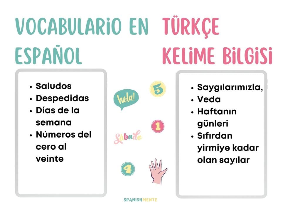 Vocabulario básico de español para estudiantes turcos/Türk öğrenciler için temel İspanyolca kelime dağarcığı